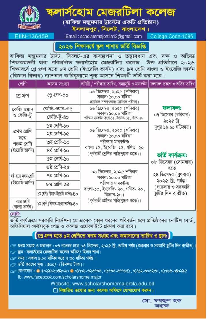 ২০২৬ শিক্ষাবর্ষে স্কুল শাখায় ভর্তি বিজ্ঞপ্তি।